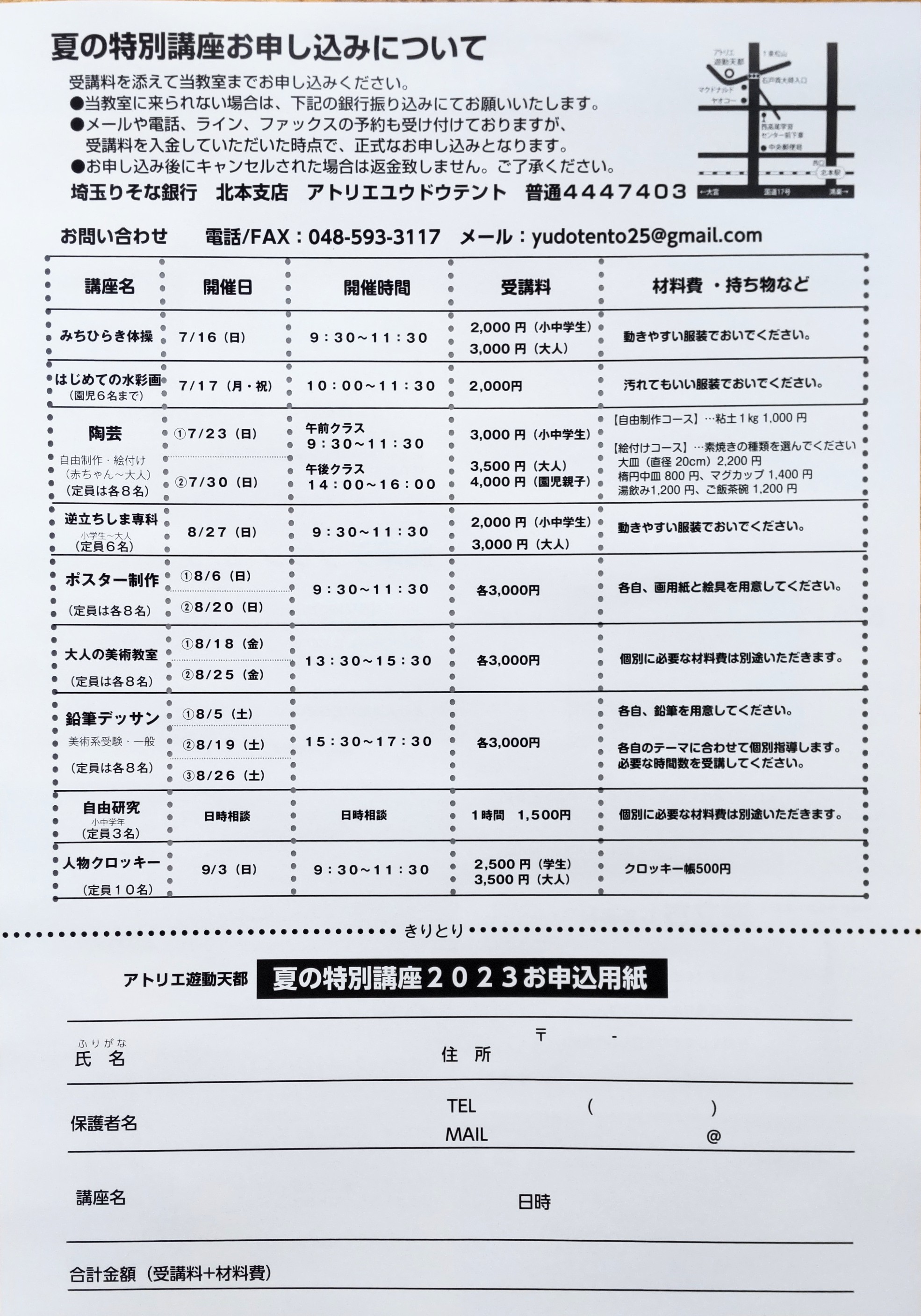 夏の特別講座についてのご案内