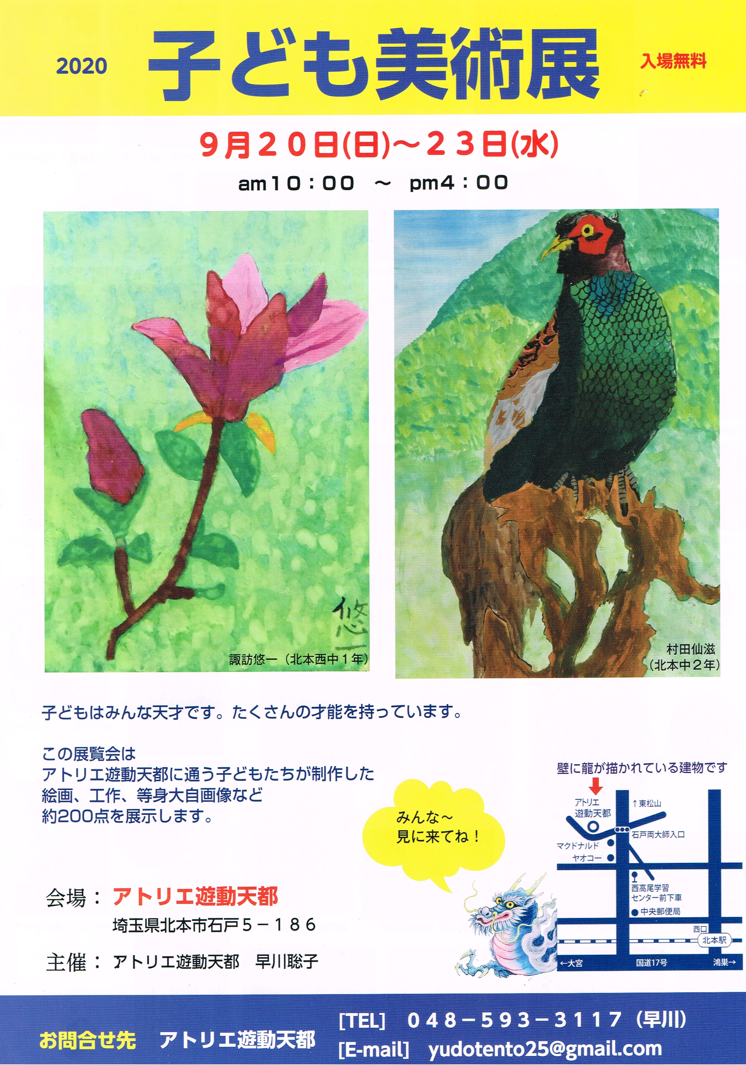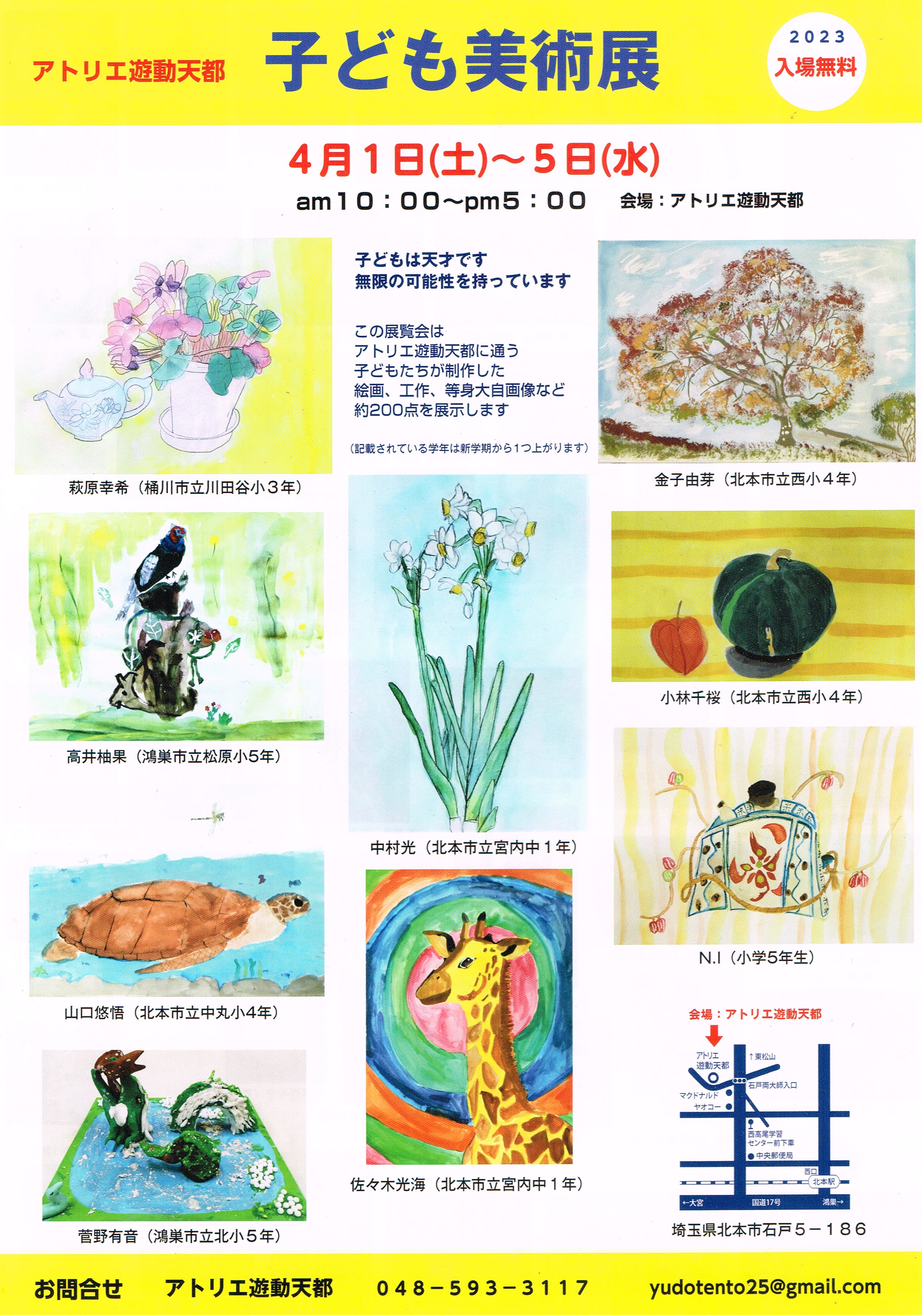 アトリエ遊動天都に通う39名の小中学生が制作した作品、約200点を展示します。