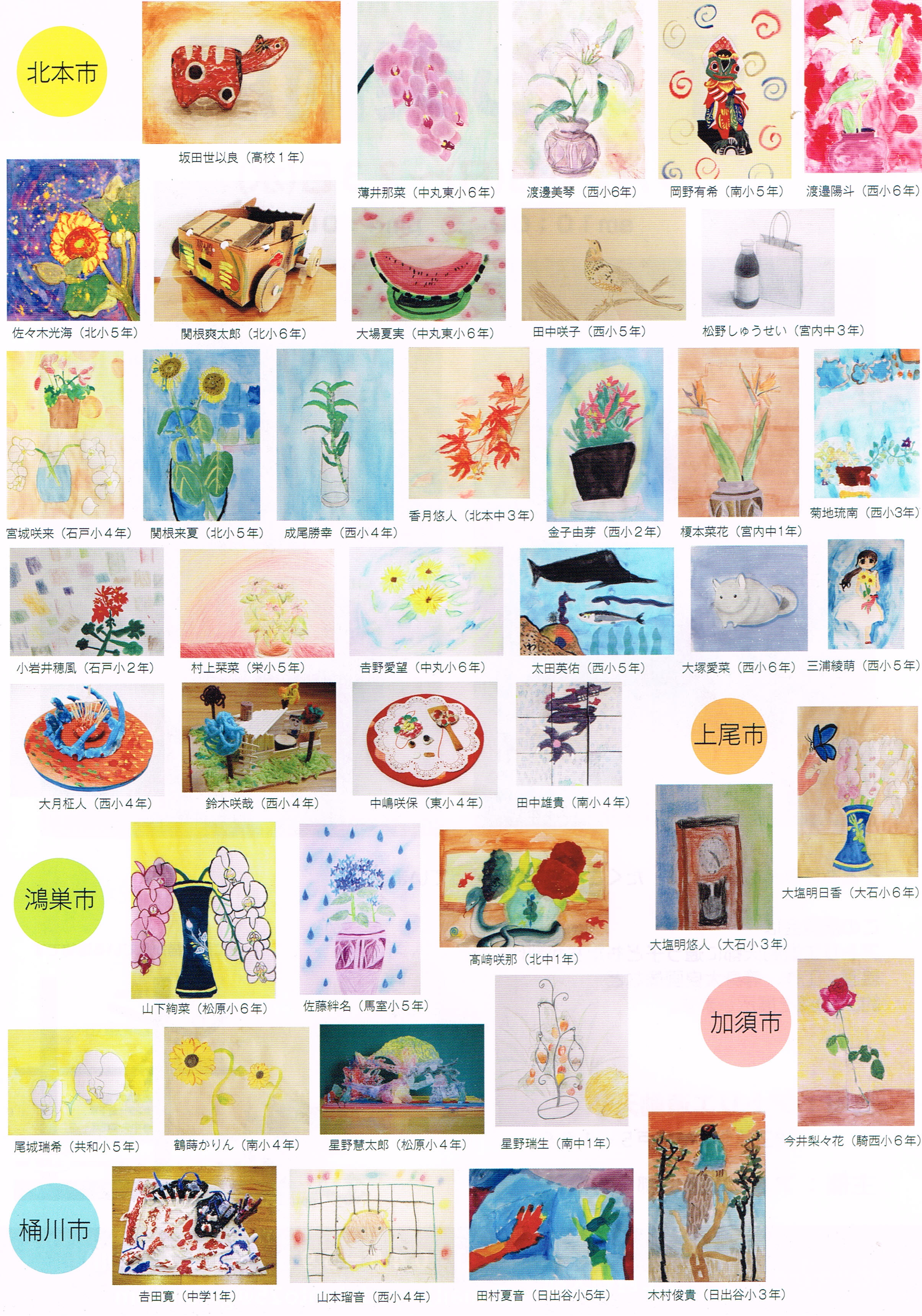 教室に通う小学生から高校生までの生徒たちの力作です。